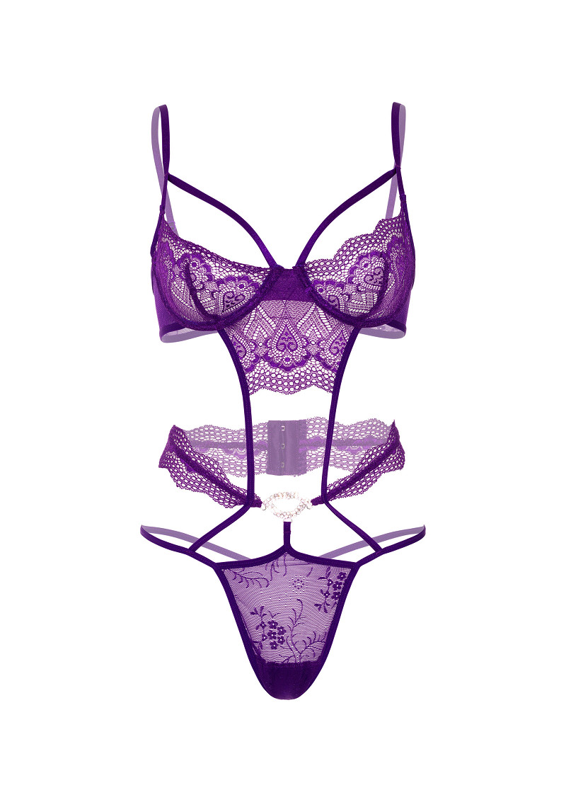 Body viola in pizzo ricamato